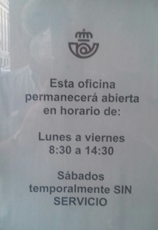 A la vista de estos carteles, he llamado a la oficina, y la respuesta ha sido de lo más sangrante: me indica el empleado con quien hablo que lo más probable es, que para los pocos días que quedan, se aplicará directamente el horario de verano: lunes a viernes. de 8.30 a 14.30, sin servicio los sábados y vigente durante los meses de Julio, Agosto y Septiembre (horario totalmente incompatible para todos los que hemos de acudir a nuestro puesto de trabajo), por lo que la atención en horario de tarde y sábados se reiniciará a primeros de Octubre, por lo que ya veré como me las ingenio......